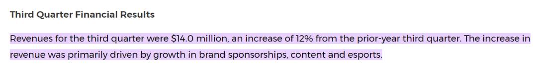 让我们翻翻FaZe的财报看看,过去几年收入都还算稳定,今年第三季度的收入比去年同期增长了 12% 。