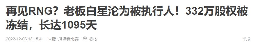 12 月 6 日,RNG 的老板也被列为被执行人,股权遭到了冻结。
