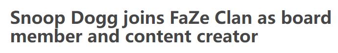 比如 Snoop Dogg ,就是因为自己的儿子是 FaZe 铁粉,被他劝说后才投资了 FaZe Clan。