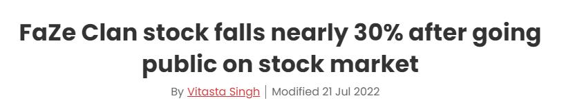 虽然上市破发很正常,像是某 B 、某米都在上市后破发过,可是人家那破发都是几个百分点而已, FaZe 上市后首日跌幅却达到了30%。