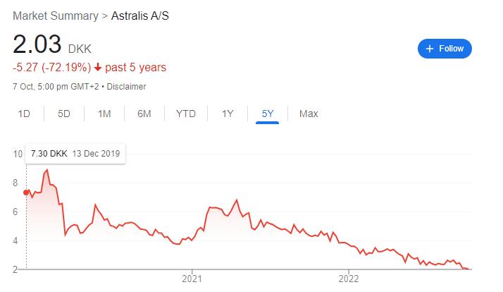 像是之前在丹麦上市的电竞战队 Astrails,凭借着横扫世界的大满贯成绩成功上市,最高市值一亿美元左右,如今股价却跌到了原先的四分之一。