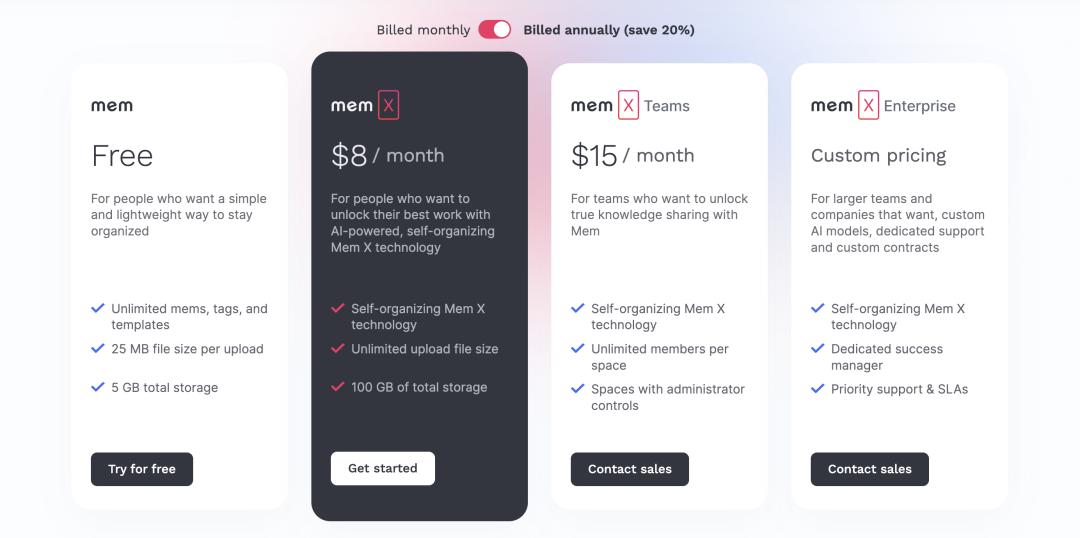 两位产品经理将 Mem 定位为一款来自加州的轻量化知识管理工具。Mem 的使命是连接世界信息孤岛,释放人类的集体智慧,即通过会思考的 AI 来构建和激发人类,去创造更多更好的想法以及更少组织的产品,官方主打 Self-organizaing Workspace 的理念,即所有的知识工作都将围绕一组共同活动展开,具体而言 Mem 会将来自个人、团队以及企业的知识结合在一起,从而提供系统性的能力和决策。