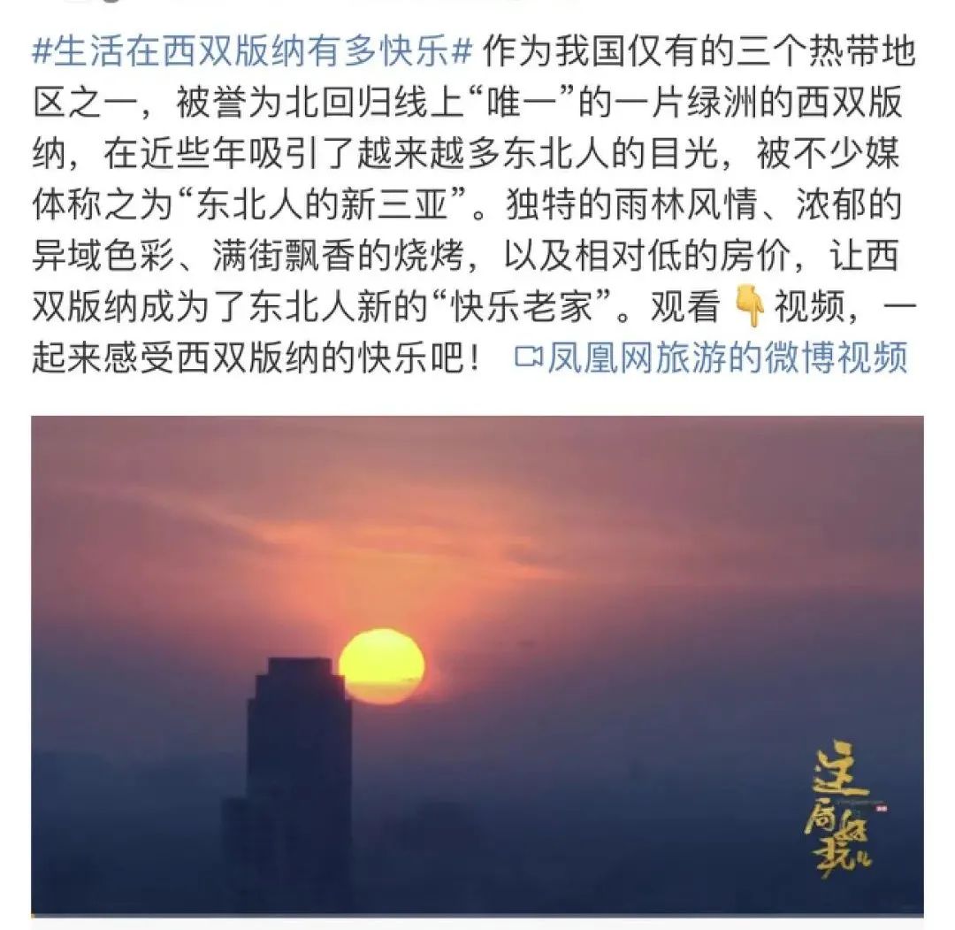 众所周知,东北大哥们的迁徙路线算是著名旅游景点的地标认证。 再看看如今西双版 纳的新名头“新三亚” ——