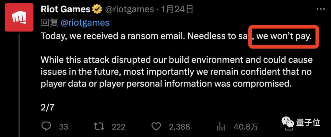 那么拳头游戏是认为这次黑客攻击很无所谓吗?