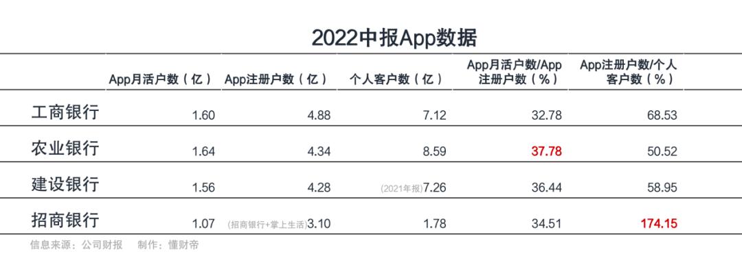 与招行相比,工行、农行、建行还有数亿零售客户没有注册手机银行App,其数字化获客、App运营能力仍有待提升。