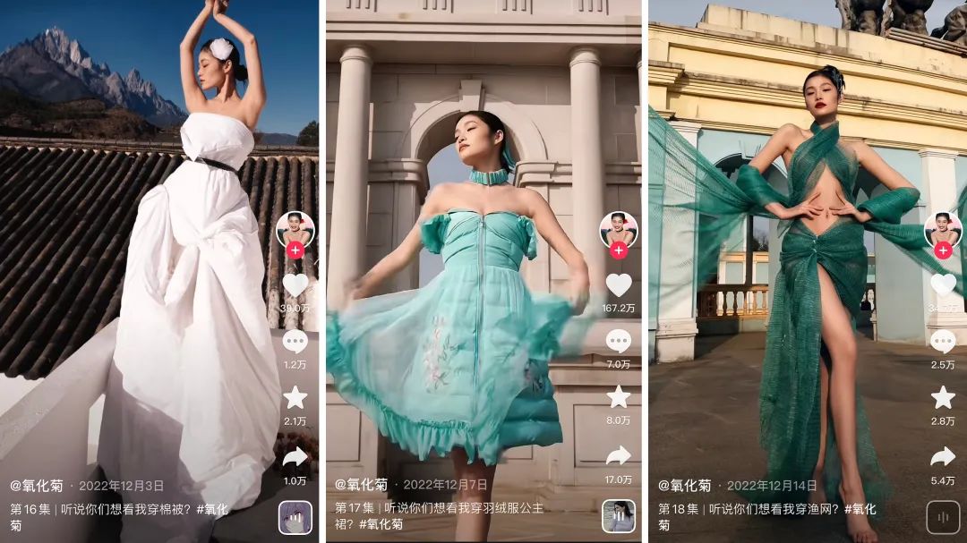 比如走变装路线的@垫底辣孩、@朱铁雄、@氧化菊,虽然风格迥异,有的是通过妆造、拍摄、P图上演多样变装大秀;有的是将特效与变装完美融合,展现了一场场具有高级感的国风变装大秀;有的是将一件件奇葩物件改造成潮流时尚单品,完成一次次经验走秀,但整体来看,走红核心却十分相似,即均以创意和创新作为支撑,全面彰显了自己的特色和优势,并不断进行内容升级,从而在2022年收获了瞩目的成绩。