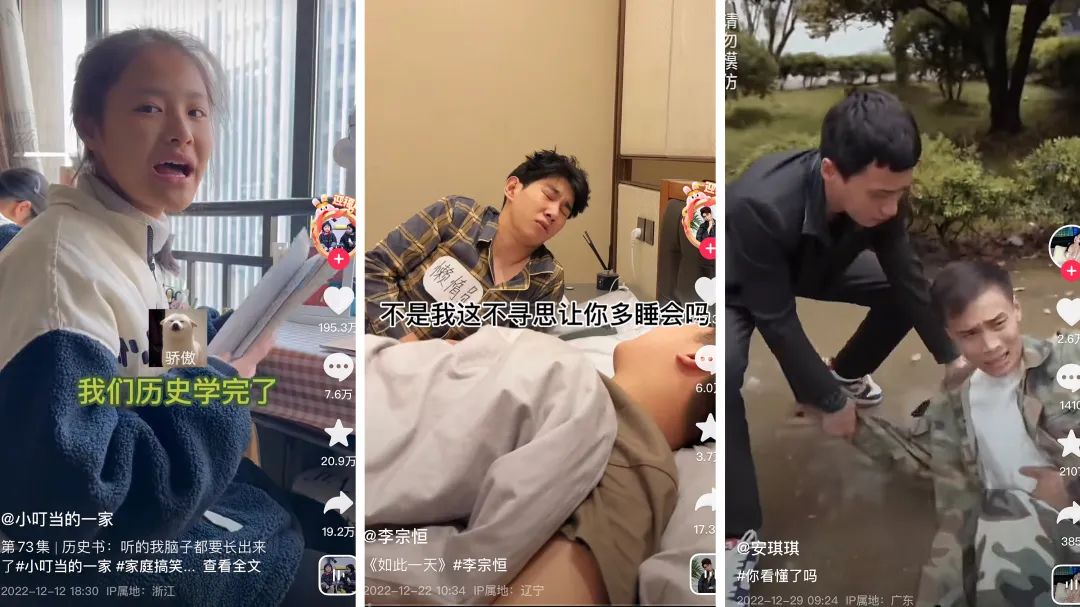 2022年1月4日,主打家庭情景喜剧的@温暖一家 在抖音上发布了第一条作品,一年后,其粉丝量达到了858.5W,涨势十分可观。