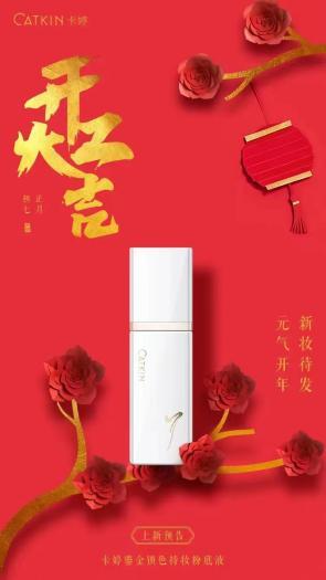 本土新锐彩妆品牌卡婷的创始人陈侨川也发布朋友圈称“鎏金锁色持妆粉底液”即将上线。