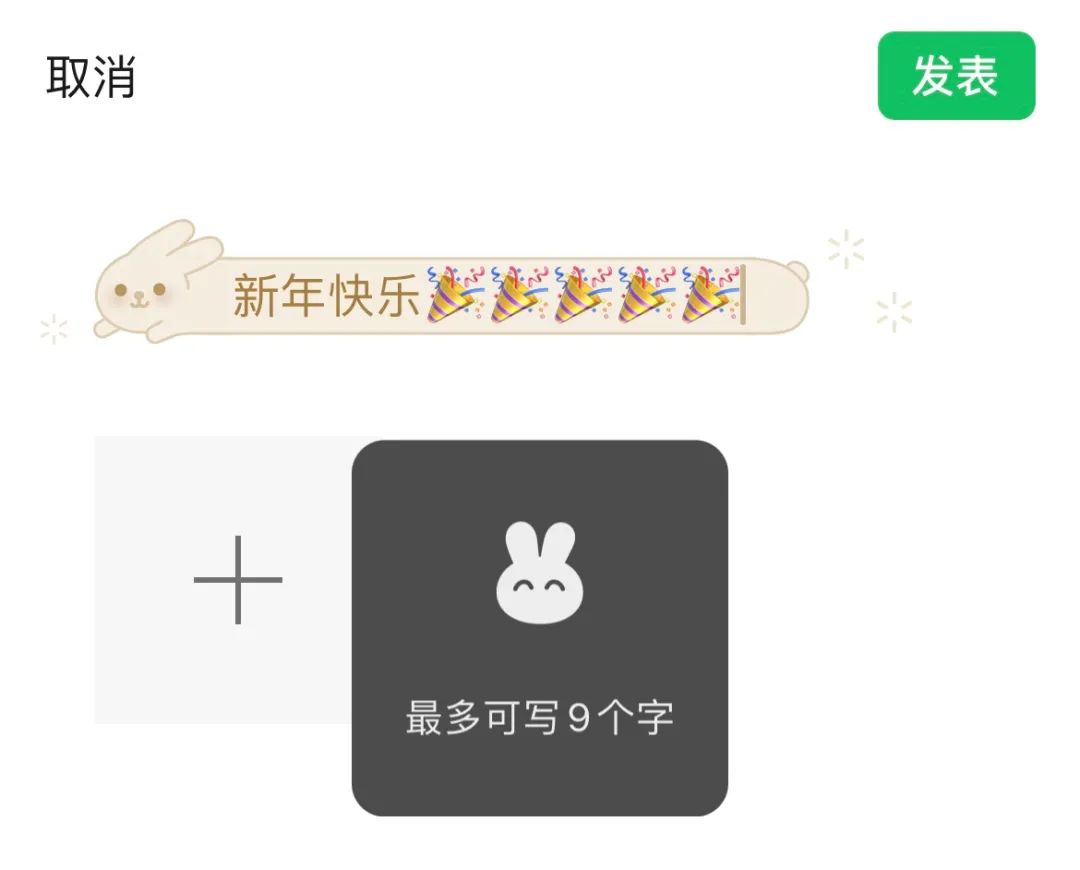 之所以限制最多 9 个字,我认为大概率是为了视觉效果服务。试想一下,如果一下子写几百字发布,那这个小老虎和小兔子会被撑成啥样?
