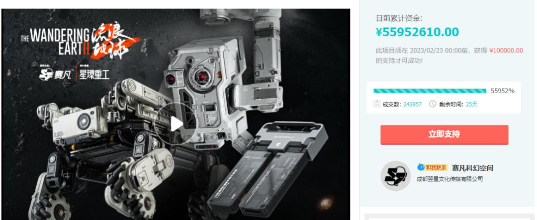 1月28日,#流浪地球2周边商家呼吁理性消费#这一话题登上热搜。记者注意到,原本目标金额定为10万元的官方授权模型,目前众筹金额已超5400万,为目标金额的540倍。