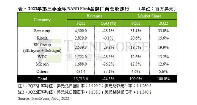 可现在真不是这个说法,因为晶圆代工良品率的改善,加之个人计算机和智能手机需求下滑的缘故,去年NAND闪存的需求与价格双双下滑。根据集邦咨询的数据,三季度NAND闪存价格跌幅扩大到30%至35%,整体市场处于供过于求的状态,短期内市场难以看到复苏的希望。