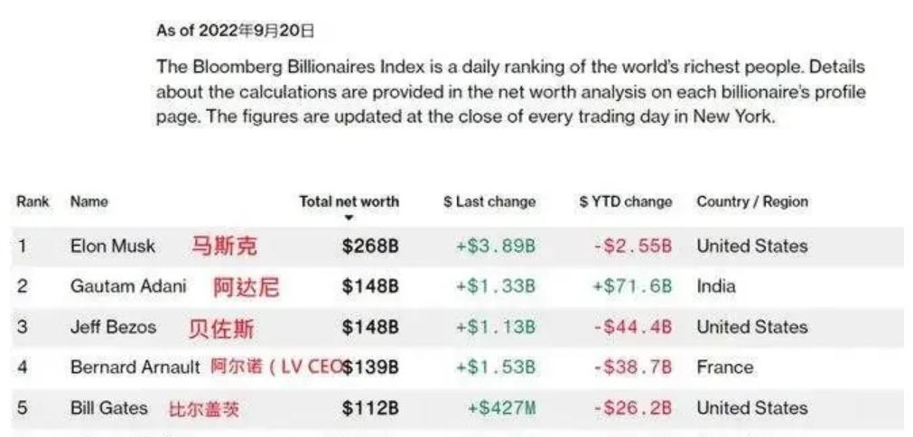到了2022年9月,高塔姆•阿达尼接连击败了微软创始人比尔•盖茨、LV集团CEO阿尔诺、亚马逊创始人贝佐斯,登上了世界第二富豪的宝座,也成为第一个坐到这个位置的亚洲人。