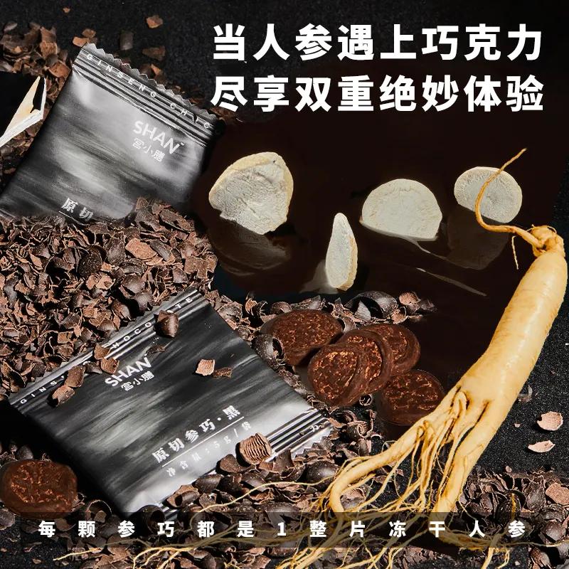 自这款人生脆片黑巧出现后,人参便开始变得有亲和力起来,中式滋补品牌宫小膳紧跟其后的推出了“原切参巧”,是当时市面上唯一一款人参巧克力。