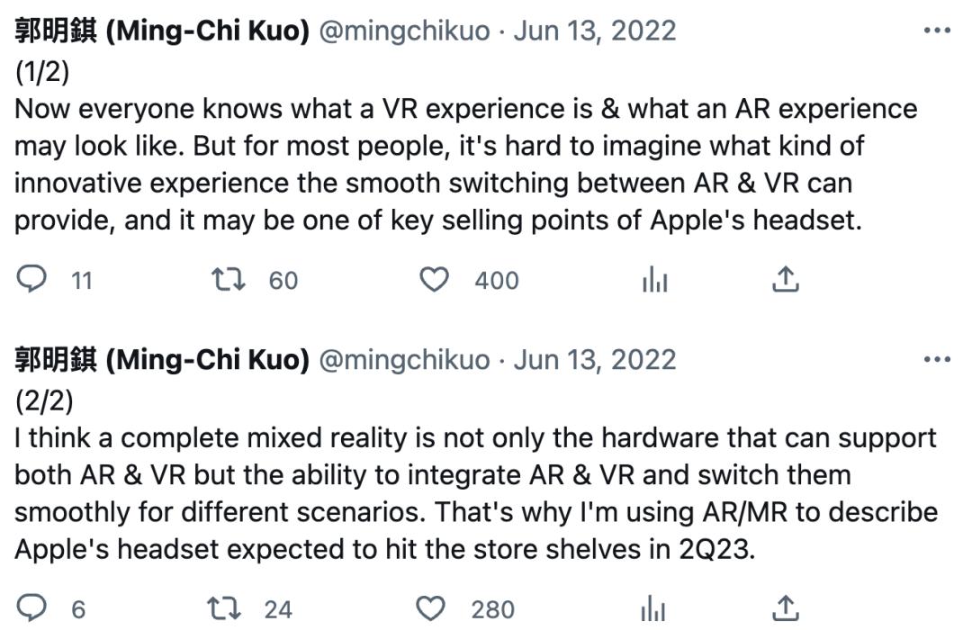 此前,苹果分析师郭明錤曾在推特上分析该功能将成为苹果MR头显的关键亮点之一。他认为一个真正的MR头显不但能支持AR和VR的硬件,而且还应该支持整合AR和VR两种模式,并可以在两个不同的场景中顺利切换。