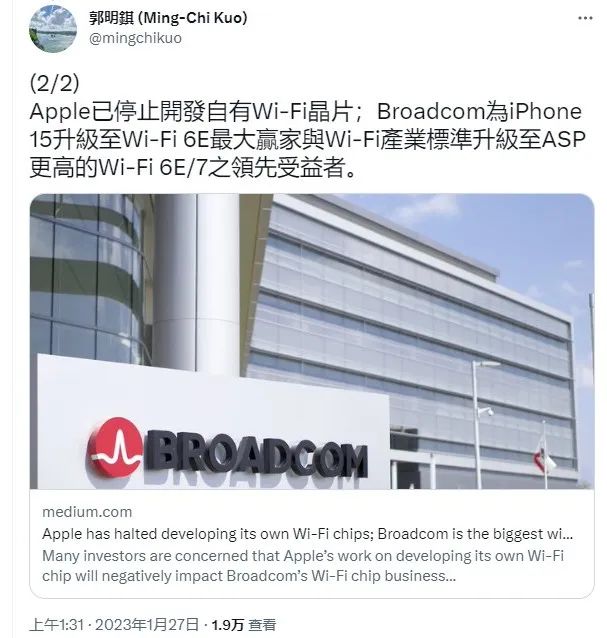 然而郭明錤近日的推特,却是彻底打破了之前的传言。苹果不但基带芯片陷入停滞,就连Wi-Fi芯片的研发进度也不及预期,高通+博通的组合将在可预见的未来继续为苹果提供5G基带/Wi-Fi芯片。想摆脱对高通+博通零部件的依赖,对苹果而言并不是一件简单的事情。