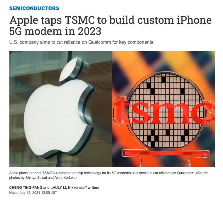 在苹果宣布自研基带后,一段时间内可谓是捷报频传,不但接连有权威媒体表示苹果自研基带将在2023年登场,就连给苹果提供基带的高通,都在自己的投资者日活动上表示,预计2023年只会供应苹果20%的基带芯片,目前使用的博通Wi-Fi和蓝牙芯片更是要被全面取代。