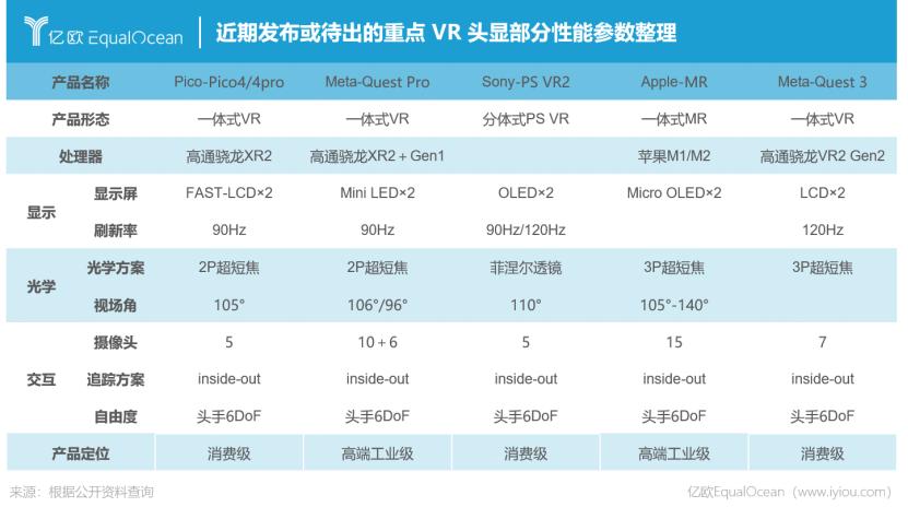 虽然技术突破面临困难,近一年发布的Meta Quest Pro、索尼 PSVR 2以及待出的苹果 MR 一体机均搭载眼动追踪功能,为眼动追踪的消费级落地揭开序幕。