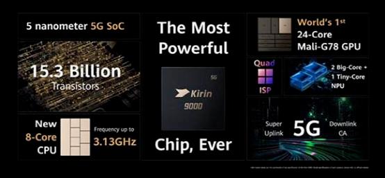 2020 年,麒麟 9000 发布,该芯片采用 5nm 制程,集成了 153 亿个晶体管,比苹果 A14 还要多出近 30%,堪称巅峰之作。