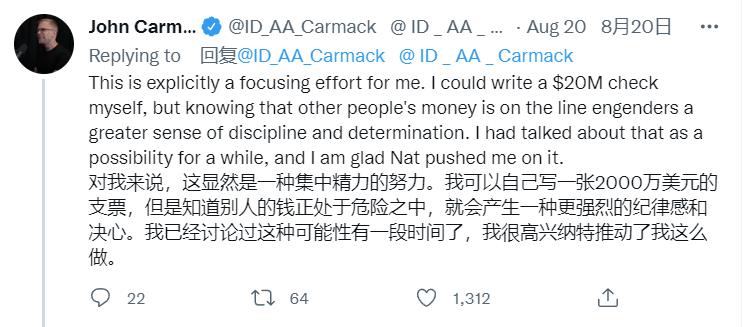 还在推特上说其实 2000 万他自己也能拿得出手,但从别人那儿拿钱,会给他危机感,迫使他把事情做得更好。