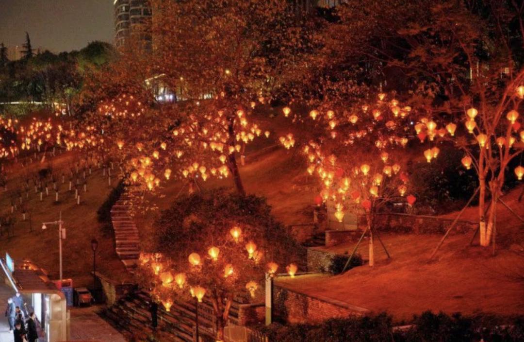 张灯结彩的满树灯笼,更是把节日氛围拉满。