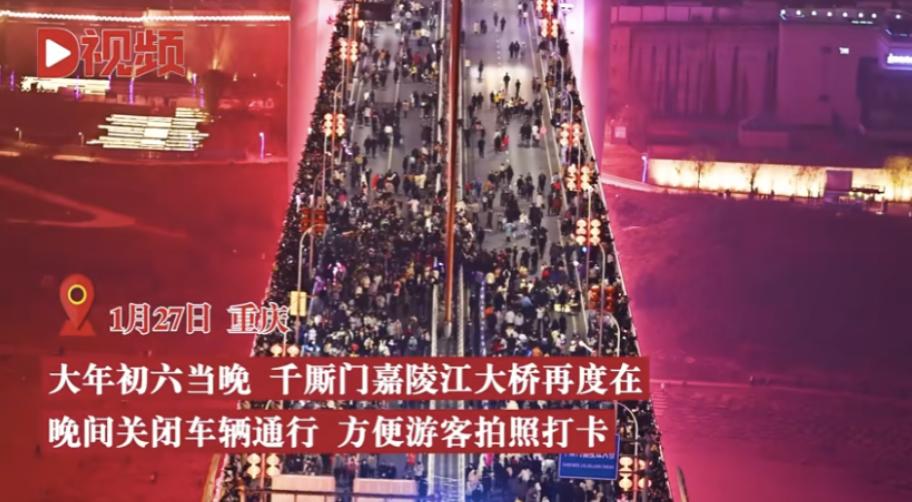 为方便游客拍照打卡,重庆千厮门嘉陵江大桥再度在晚间关闭车辆通行。