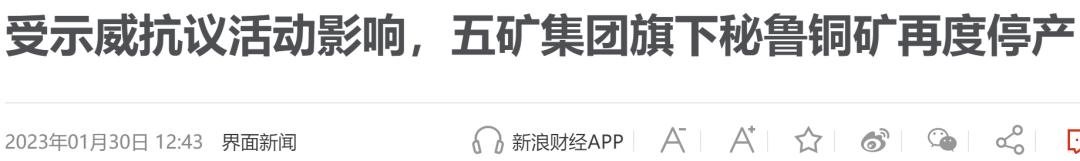 这有点类似去年俄乌战争对油价的推升,秘鲁是世界第二大铜生产国,占据全球10%的铜供应,新闻称该国30%的铜矿面临停产风险。