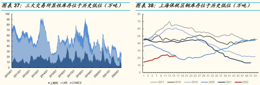 于是我又把眼光放到供给端。查到一个是当前铜的库存处于低位