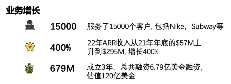 成功要素:三位创始人是Martech领域的连续创业者,在发起Jasper之前已经在营销场景经历了7年的时间,从最早的咨询公司Market Results,再到17年发起Proof帮助企业为用户提供个性化的登录界面,创始团队在营销科技场景已经积累了丰富的经验和广大的客户群体。Jasper的成功很好地验证了创业是认知、客户、团队积累的一次爆发:Proof的2.5万家客户,帮助Jasper快速完成PMF并且在一周内完成数百万美金ARR。