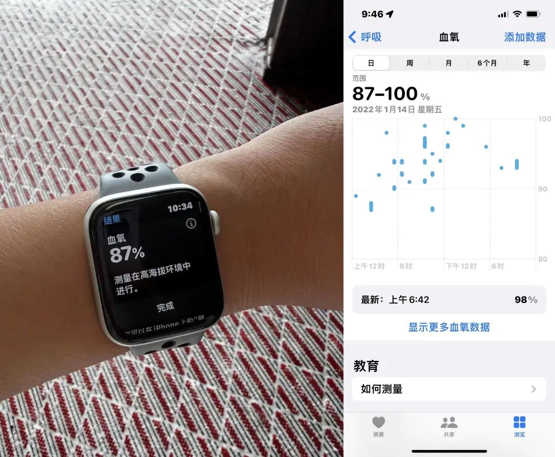 当然更常见的,是环境变化导致的血氧急剧降低,譬如去海拔较高的地方,就容易出现血氧降低的情况。这项指标在现今社会当中越来越重要,尤其在疫情时代,血氧低被视为是新冠症状之一,于是监测血氧成了许多智能穿戴设备都得有的功能。即便没有 Apple Watch,我们也能将其他品牌设备所收集到的血氧数据,同步至《健康》app 中。