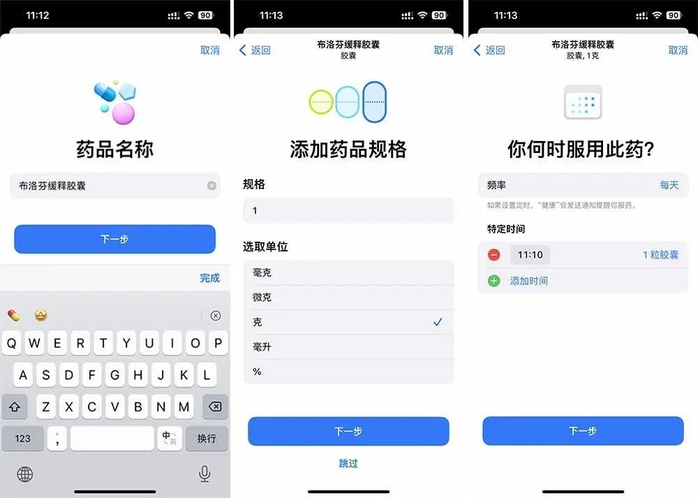 用药提醒也加入了《健康》app,可以私密又便捷的记录你服用药物、维生素、营养品的情况,从服用频率,到药品名称、性状、规格、颜色、服用频率,服用结束后还可以把它归档,可以说是非常详尽了。当然,你可以在 Apple Watch 上看到用药提醒。