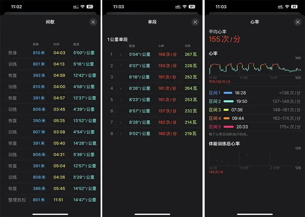 体能训练部分得到了大升级,不仅可以自定义体能训练计划、与「曾经的自己」竞速。还能在运动过程中记录你的心率区间、跑步功率以及跑步时的姿态。