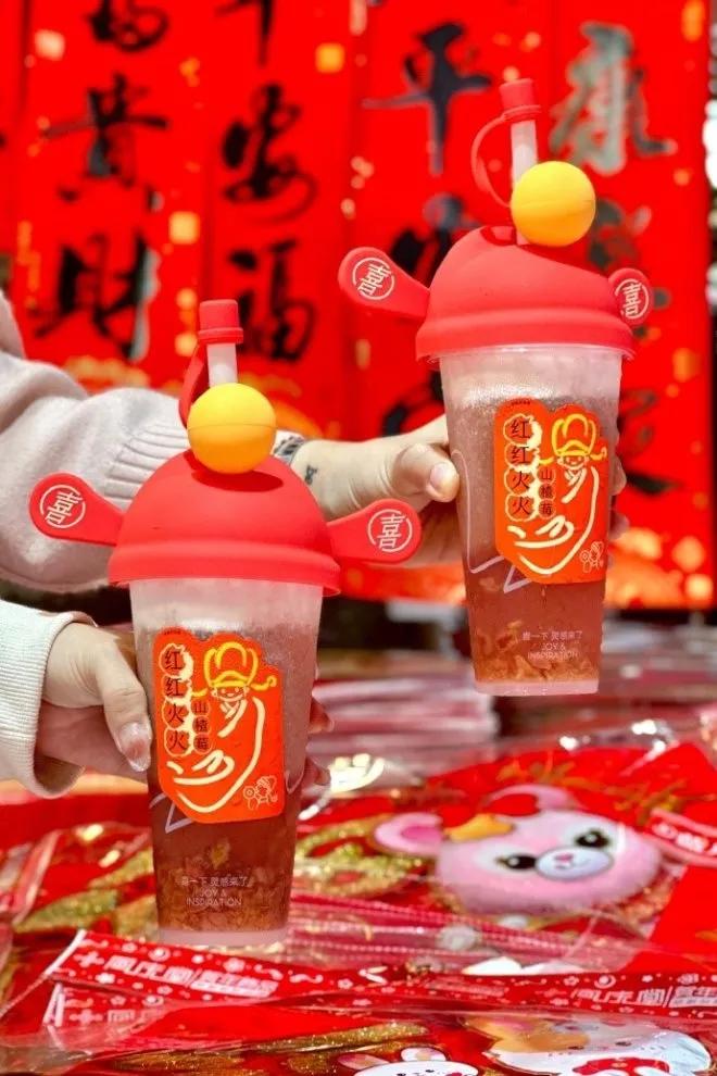 销售最火爆的产品是新年新品“红红火火山楂莓”,总销量已超100万杯。