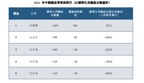 2021年,在中国药品零售商中,就标准化用药组合相关的产品销售所产生的营收(即由方带动的营收)而言,德生堂均排名第一位。
