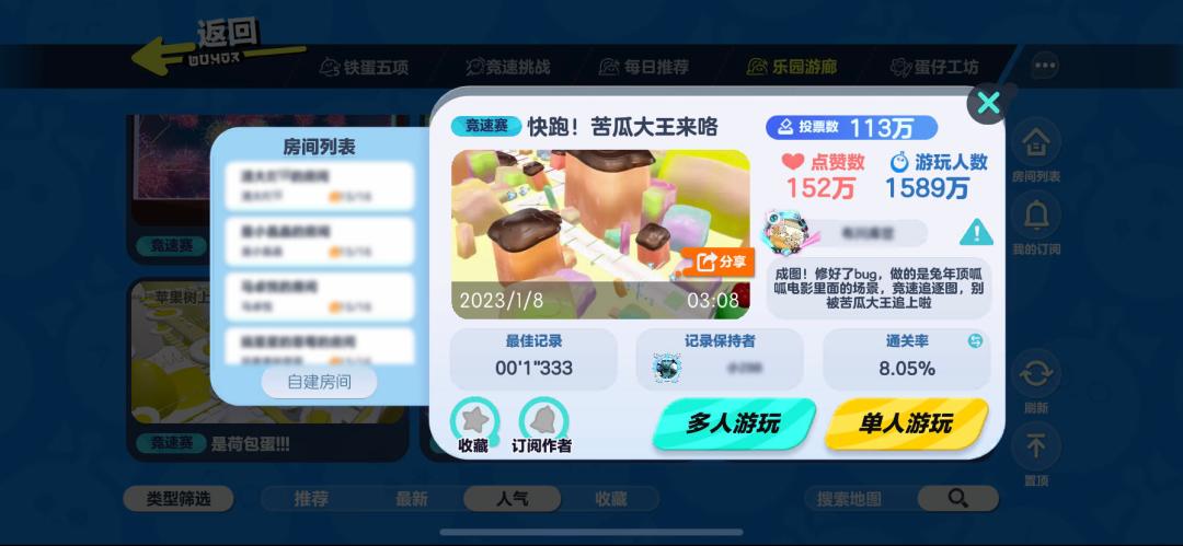 热门地图游玩过的人数少则500万,多则1500万,在抖音、小红书等社交平台也有大量地图推荐的贴文。玩家MRL就已经不怎么玩竞速,而是每天找“蛋搭子”一起打卡乐园跑图。
