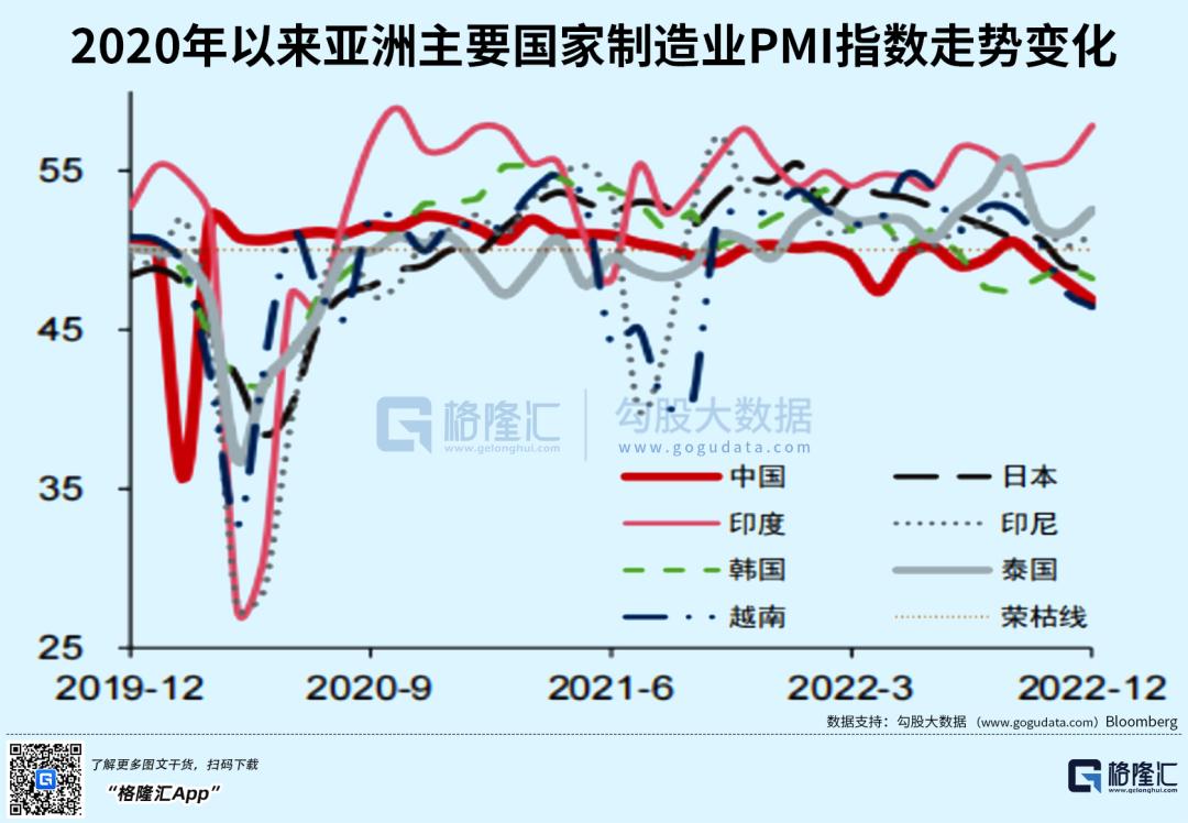 主要国家的制造业多数出现下滑,只有亚洲印度、东南亚等新兴市场表现坚挺。