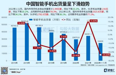 下游应用市场的需求不足也反映了制造业的低迷状况。以智能手机为例,去年前11月智能手机出货量下滑了23.2%,随着手机消费进入淡季,跌幅逐渐拉大,给集成电路芯片使用造成负面影响。