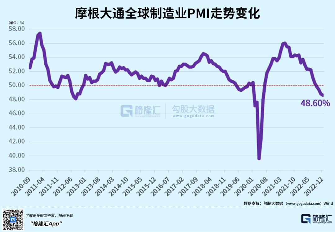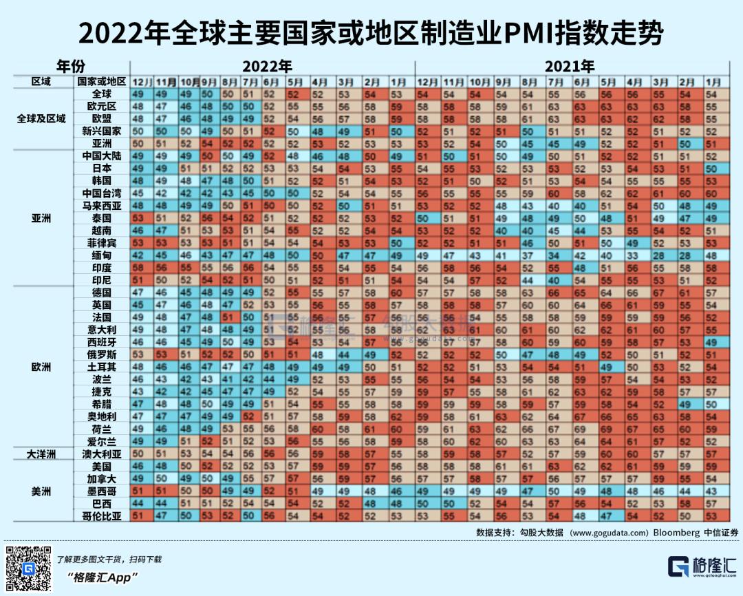 22年,全球主要发达经济体退出大规模刺激经济手段,转向加息遏制国内通胀,导致经济增长动能下降。全球制造业PMI从9月份开始低于临界点水平。12月制造业PMI继续收缩,下降至48.6。