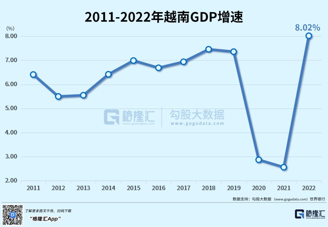 越南去年的GDP增速达到了8.02%,创造了25年来最高的经济增速,也超过了年初6%左右的增长目标。