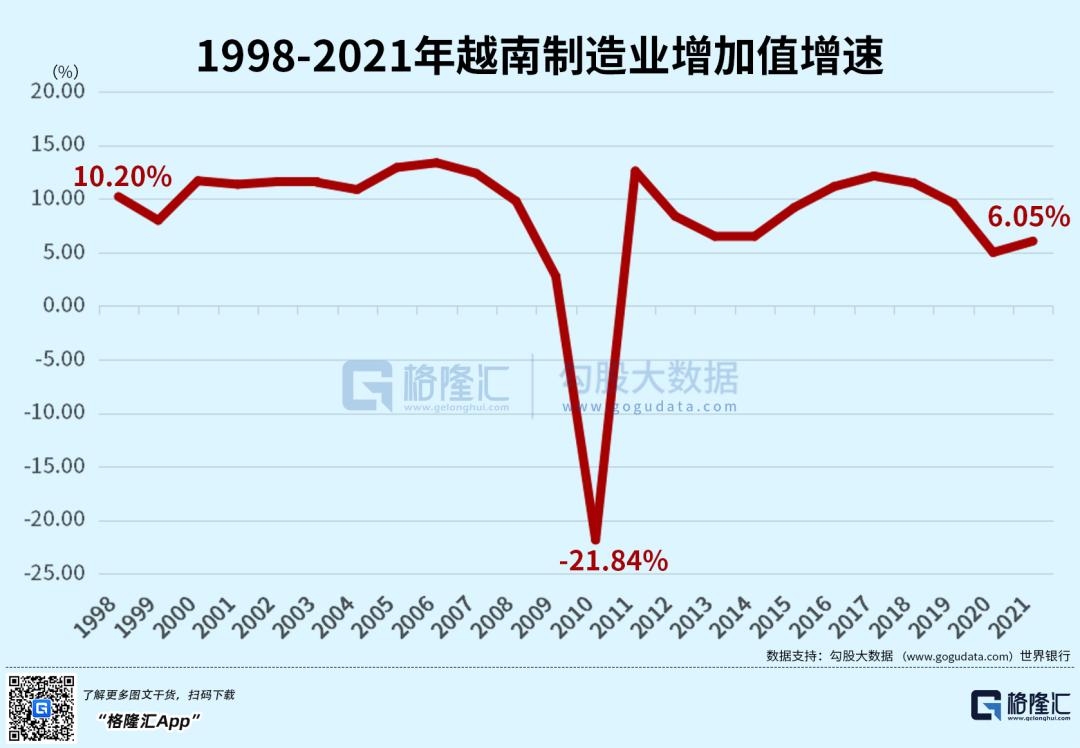 过去几年,制造业的增长一直是越南经济反弹的核心驱动因素,22年越南制造业增长8.1%。