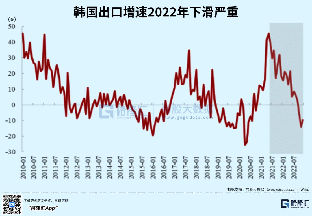 造成的间接结果,由于美国《通胀削减法案》等的实施,日韩等国家出口正遭受重创。韩国自从2008年金融危机以来首次出现贸易逆差,特别是半导体堪称韩国出口的主力军,占了韩国出口将近40%。