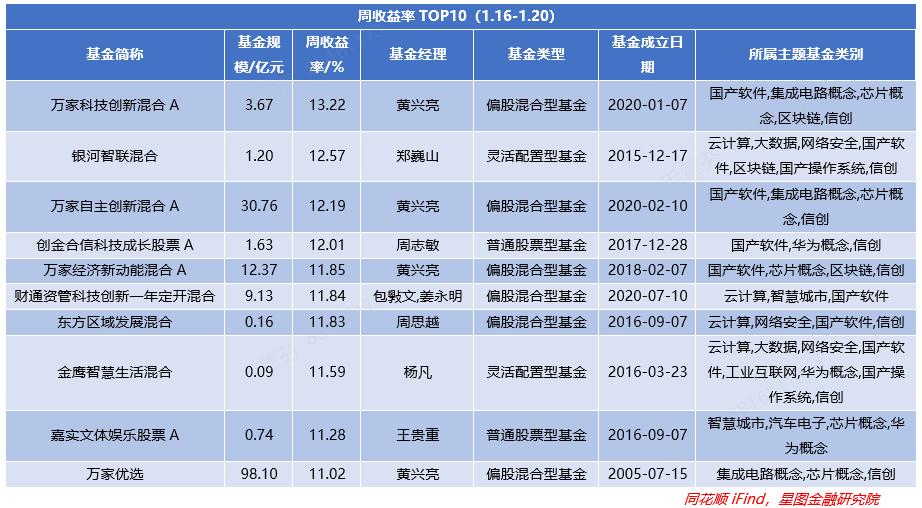 节前基金收益率(A/C基金以A类或排名靠前为准,QDII美元/人民币以排名靠前为准)TOP10全部是主动权益型基金。而且由于节前海内外权益市场表现不错,而且信创赛道反弹,所以该类型基金表现靠前。节前整体上各类资产表现出色,所以带动基金整体收益回升至1.34%,环比+0.8pct。从风格上来看,中型基金领涨。节前万家基金旗下的基金收益最高,达到了13.22%,环比+2.73pct,收益率小幅上涨,其余基金在11%以上。