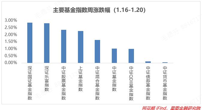节前各大基金指数继续全部收涨,整体涨幅同春节前周表现基本一致。主要在于内地、港股市场整体表现不错,带动深系基金领涨所有类型的指数,涨幅接近3%。分布较为均衡的中证基金指数则被上系指数拖累,总体涨幅不及深系基金指数,涨幅在1%至2%之间。其余类型基金表现其实也不弱,涨幅都在1%左右。债基走强;货基变化不大。