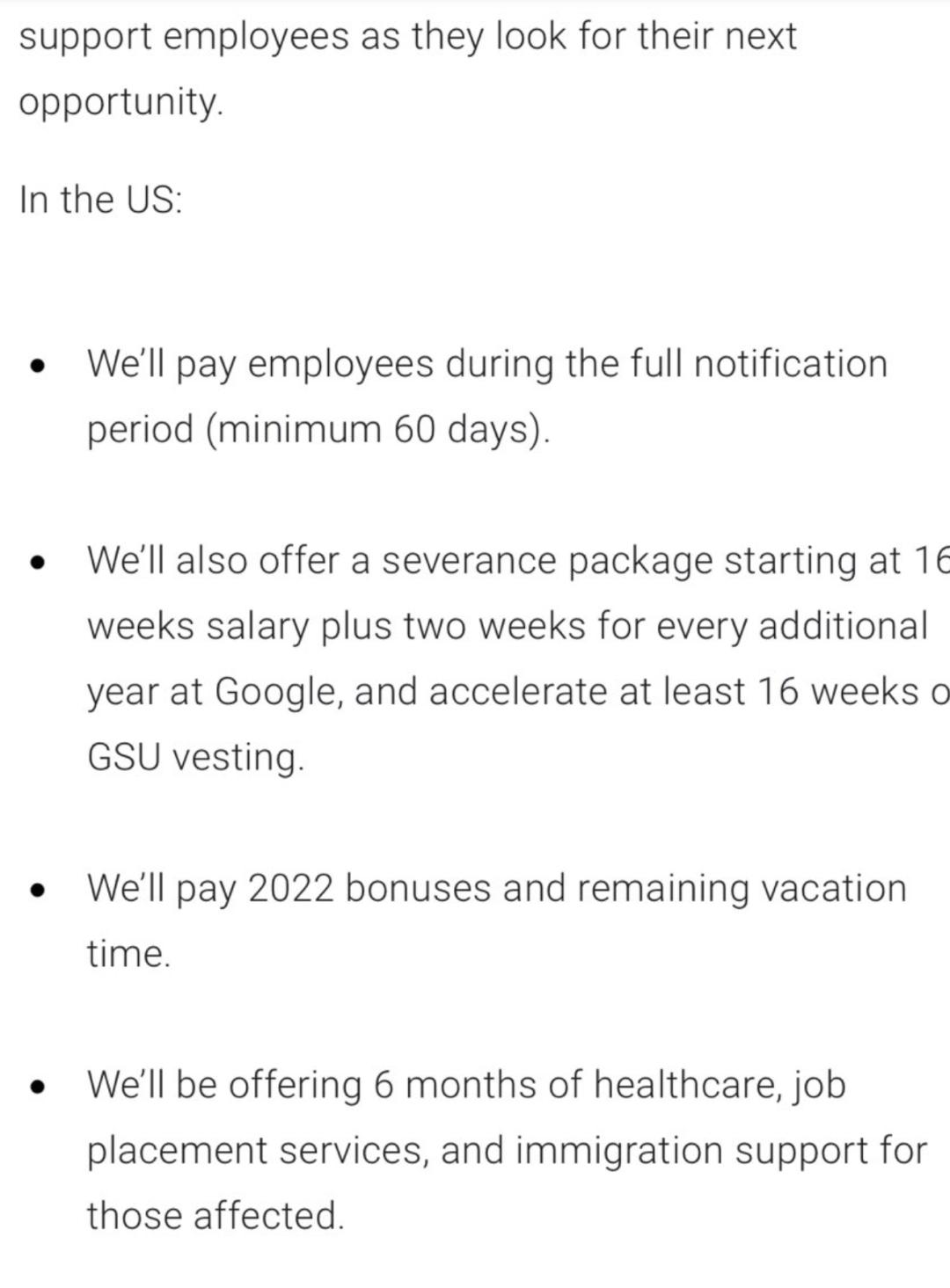 但单从薪资以及补偿来讲,或许这些被裁员的大厂员工,本身也并不需要来自互联网的同情:毕竟即使当前大裁员看起来腥风血雨,但巨头还是给到了这些被裁员工优渥的补偿:Meta、Google 除了在裁员通知期间为被裁员工提供全额薪资(至少 60 天)之外,还会额外发放一笔补偿金 —— 这笔补偿金起步为 16 周的薪水,也会随着工作年限的提升而上浮。同时员工接下来六个月的医疗支出,公司也会全额报销。