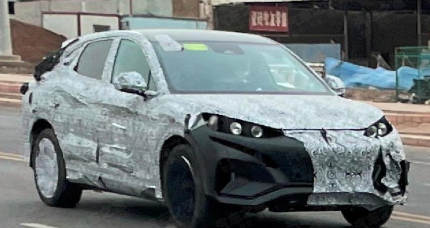 车身采用了溜背造型设计,隐藏式门把手设计依旧保留,车尾圆润并配有小尺寸扰流板,整体造型较为年轻动感,不难看出其中型纯电轿跑SUV的定位。