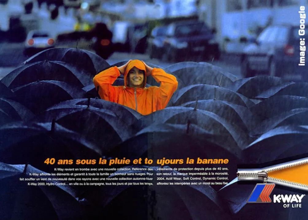 它甚至成为了雨衣的代名词,以名词的角色进入了法语和意大利语词典,“Tu as pris ton k-way ?(你带雨衣了吗?)”成为了从前人们的常用话语。