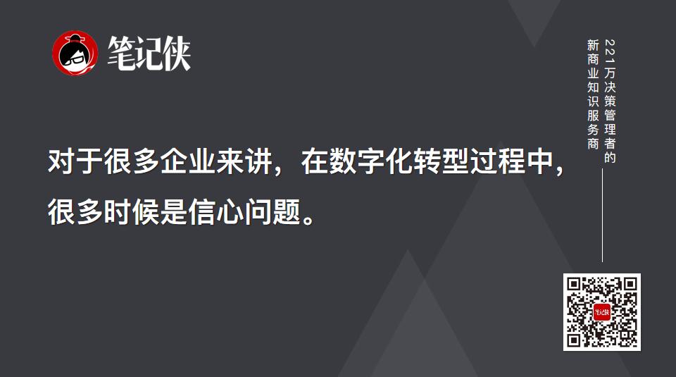 一旦你很深入研究数字化转型,你会发现如今我们不能将其机械地拆解为很多部分的独立实施,比如领导力、团队认知和支持、外部合作、商业模式变化等。若你这么做拆解,最后是拼不出一张数字化转型地图的。