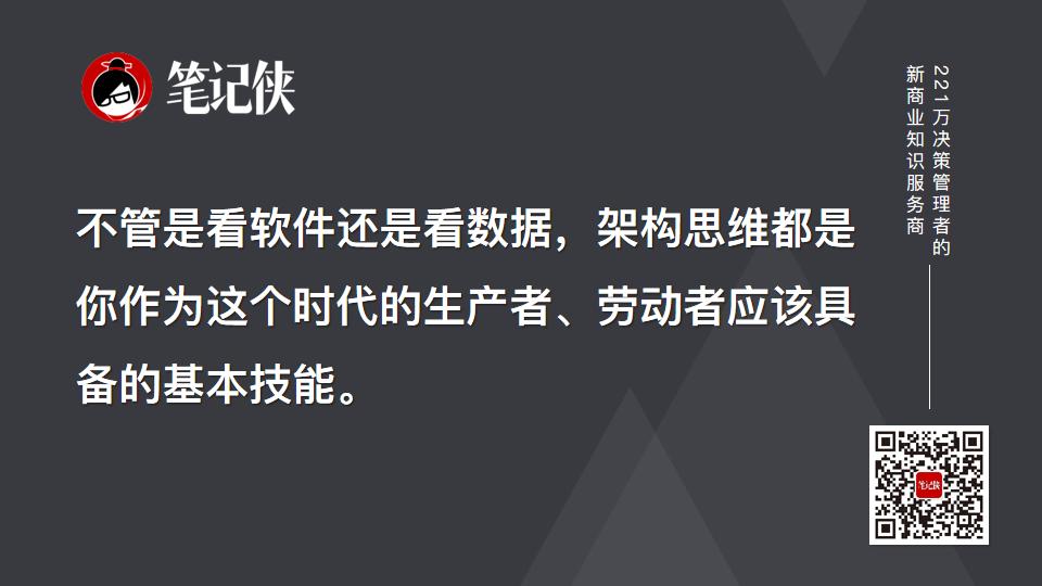 1.不管是看软件还是看数据,架构思维都是你作为这个时代的生产者、劳动者应该具备的基本技能。