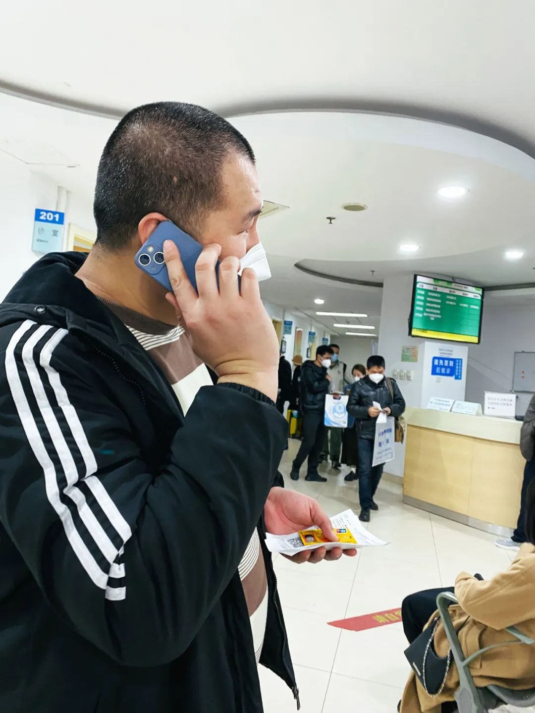 ▲陪诊员的工作常态,一手电话回复消息,一手单据,同时盯着叫号屏
