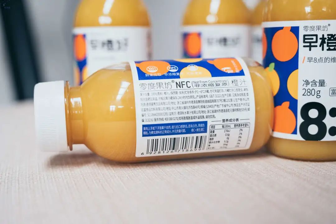 如果是低温冷藏额NFC果汁,在常温状态下不仅很难长久保存,而且温度上升后带来的口感体验度也是越来越差的,因为尊崇于鲜榨,所以看似清洁的配料表其实是牺牲了口感的体验。