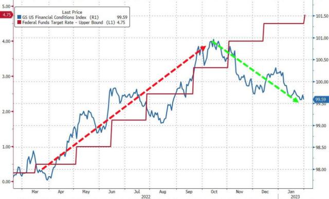 鲍威尔说,去年金融状况收紧非常严重。但他似乎并没有对最近金融市场变得宽松作出评论。